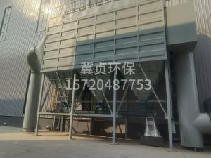 GA型离线清灰布袋除尘器工作时废气温度降为130℃,瞬间可达180℃的含尘气体由布袋除尘器中下部的烟道分配后进入各室的灰斗,烟气由于折流和速度降低等原因使得比较粗、比较重的粉尘颗粒得以沉降,达到预分离的目的。细粉尘随气流转折向上进入离线脉冲除尘器的除尘室,由于离线脉冲除尘器滤袋的过滤作用,粉尘被阻留在滤袋的外表面,过滤后净气体由离线脉冲除尘器的滤袋内部进入各单元的净气室,并汇合于出口烟道"经引风机后通过烟囱排入大气。